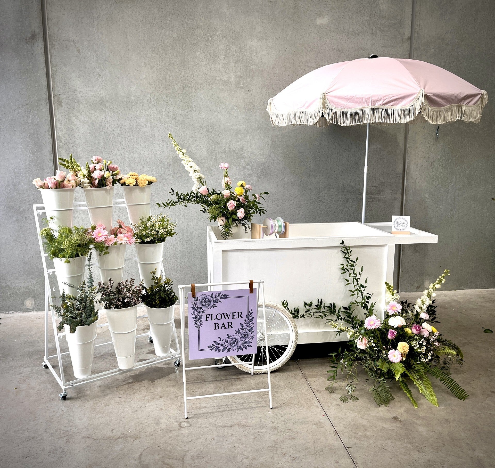 We offer cart and flower stand hire on their own, or we can create a custom package to suit larger guest numbers. Get in touch with us for a personalised quote